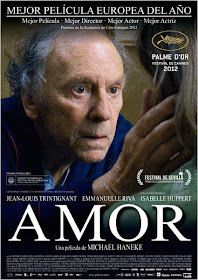 5. Por todo esto, Amor es la película más accesible de Haneke, entendiendo obviamente que dicha accesibilidad está en consonancia con el riesgo y la dureza propia de su autor. Amor impacta y conmueve en un plano más primitivo respecto El vídeo de Benny, La pianista o Caché (Escondido), porque la perversión no emana tanto de los caprichos de su firmante sino de las fuerzas de la naturaleza que nos atañen a todos. En Amor, en definitiva, Haneke desaparece, mientras que la figura del director actuaba como sombra alargada en cada fotograma de sus anteriores películas. Dicha sensación de verismo, siempre falsa al estar ante una ficción, encuentra en Amor su versión más pura. El de Haneke es un cine de la contemporaneidad, y Amor funciona en contraposición como historia de valor universal y atemporal. Esa matizada accesibilidad, unida a su condición de cine de autor que acaba perdiendo la mirada del director para acoger en sus entrañas las leyes implacables de la vida y de la muerte, es lo que entusiasmó a un cineasta tan estimulante y efectista como Nanni Moretti, presidente del jurado en Cannes. También la razón por la que los académicos y los críticos estadounidenses, por lo general acostumbrados a aplaudir productos adocenados, siempre en constante lucha con la noción de autor, han elevado la película allí donde La cinta blanca, más compleja y robusta en todos sus apartados, no logró imponerse.